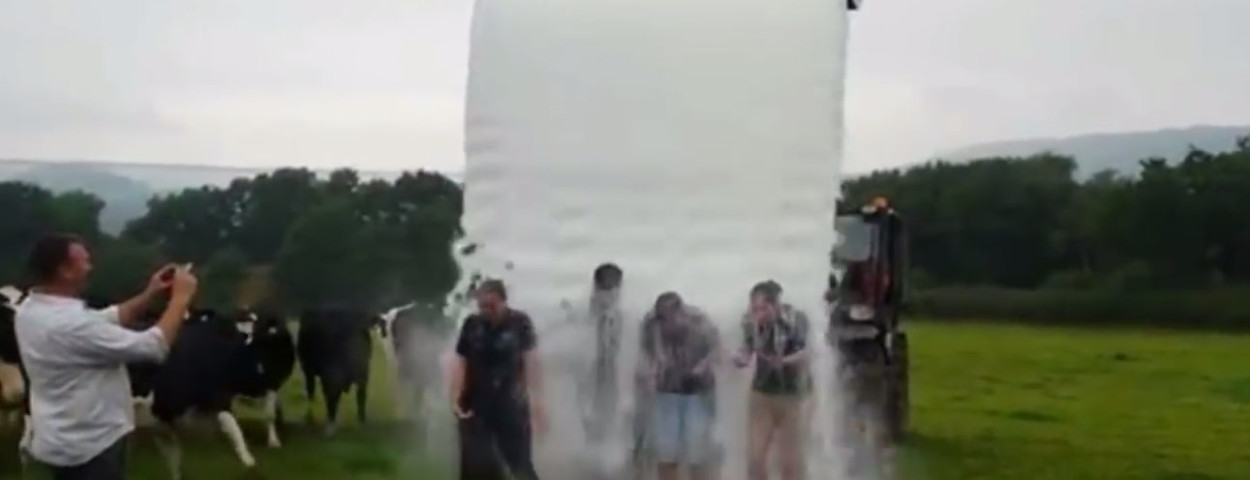In Groot-Brittannië neemt het boerenprotest tegen de aanhoudend lage melkprijzen originele vormen aan. Enkele jonge boeren uit Devon, een provincie in het uiterste zuidwesten van het Britse eiland, hebben er niets beter op gevonden dan een melkvariant op de immens populaire ice bucket challenge te starten. In een eerste demonstratievideo is te zien hoe een verreiker zijn laadbak vol melk uitstort over vijf jonge landbouwers en dierenartsen. De hashtag die gebruikt wordt, is #FCNmilkbucketchallenge en verwijst naar het Farm Community Network (FCN), een liefdadigheidsorganisatie voor boeren in problemen waar de opbrengst van de actie naartoe gaat.