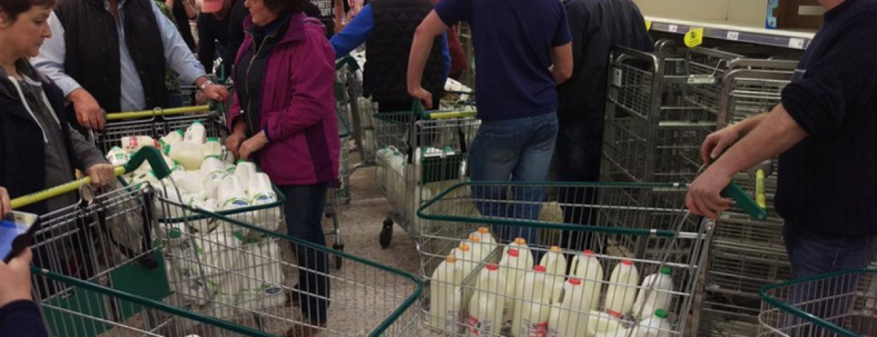 nieuwsIn Groot-Brittannië breidt het protest over de lage melkprijzen verder uit. Vorige week haalden boze melkveehouders melk uit de winkelrekken van onder meer supermarkten Lidl, Asda en Tesco en ook deze week wordt er verder actie gevoerd. Op Twitter en Facebook worden massaal filmpjes en foto’s van de actie gedeeld onder de naam ‘Milk Trolley Challenge’. “Wij roepen de boeren in heel het land op om mee te doen met deze uitdaging: hoe snel kunnen zij de winkelrekken in een naburige supermarkt leegmaken?”, zegt een landbouwer in ‘The Mirror’.