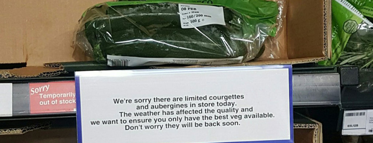 De tekorten waren vorige maand het eerst zichtbaar bij aubergines en courgettes. Nu komen ook andere groenten onder druk, onder meer paprika en broccoli. De leveringen vanuit Spanje bedragen slechts 30 à 50 procent van normaal. Naast tekorten voor bepaalde producten stijgen ook de prijzen, al speelt hier ook de dalende pond een rol. Heel wat Britten uiten hun ongenoegen op Twitter, met de hashtags #lettucecrisis of #courgettecrisis. Anderen proberen er munt uit te slaan door groenten aan heel hoge prijzen aan te bieden. Dat gebeurt op markten, en zelfs via sociale media zodat The Telegraph een zwarte markt voor groenten ziet opdoemen.