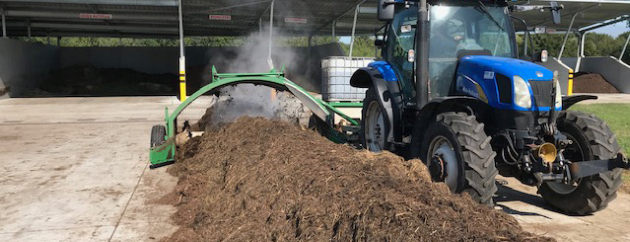 ILVO benut in zijn boerderijcompostering meerdere types uitgangsmateriaal: vers grasmaaisel, allerhande groenafval, stroachtig materiaal (bv graszaadhooi, graanstro), houtsnippers en houtschors. Daarnaast werd ook geëxperimenteerd met afgewerkte teeltsubstraten uit de tomaten- en aardbeienteelt, heidechopper, vlaslemen, mestproducten en schoningsafval van openluchtgroententeelt (prei, kool- en wortelresten). Vooral in de eerste weken vergt boerderijcompostering veel aandacht. Koen Willekens: “In de eerste fase gaan we minstens drie keer per week door de ril met de compostkeerder. Door de oplopende temperatuur verdampt er veel vocht. Bij elke keerbeurt in die eerste fase voegen we per ril van 50 meter tot 2.000 liter vocht toe, water dat eerder van de site afstroomde en werd opgevangen.” Een stabiele compost maken, duurt een drietal maanden. Daarna rijpt hij nog verder en kan hij op elk moment toegepast worden om de bodem te verlevendigen.