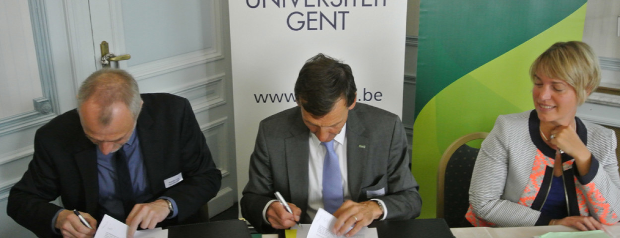 nieuws“Wetenschappelijke onderzoeken rond duurzame innovaties vinden te weinig hun weg naar de praktijk”, aldus decaan van de faculteit Bio-ingenieurswetenschappen Guido van Huylenbroeck. Om hier verandering in te brengen, werkt de universiteit samen met landbouwbank Crelan voor de oprichting van een nieuwe leerstoel ter bevordering van innovatie in de duurzame landbouw. Die werd gisteren ondertekend onder het goedkeurend oog van Joke Schauvlieghe. De minister van Landbouw en Leefmilieu prees het initiatief dat “meebouwt aan de toekomst van een duurzame landbouw in Vlaanderen”.
