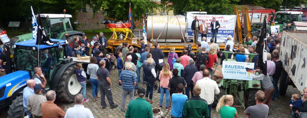 Van alle landbouwers lijken de melkveehouders het meest tot actie bereid. In Duitsland zijn ze afgelopen maandag aan een tractorentocht begonnen die hen nog tot en met 1 september door het hele land zal leiden. De boeren zijn op vier verschillende plekken gestart en blijven acht dagen lang een verschillende route volgen om op de laatste dag samen te eindigen in München. Tijdens de tocht pikken voortdurend tractoren aan terwijl andere tractorbestuurders afzwaaien en huiswaarts keren.