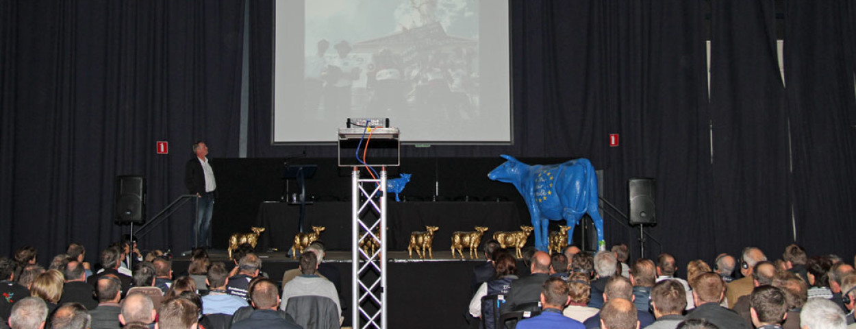 De kunstkoe ‘Faironika’ – die bij EMB symbool staat voor een kostendekkende melkprijs – is inmiddels overal in Europa in de eigen landskleuren vertegenwoordigd. In Ciney werd voor het eerst de ‘Gouden Faironika’ uitgereikt voor mensen en organisaties die zich verdienstelijk hebben gemaakt voor de melkveehouderij. De voormalige landbouwcommissaris Dacian Ciolos, de organisatie Slow Food en de Duitse melkveehouder Michael Alterauge werden met een Gouden Faironika bekroond. Romuald Schaber, voorzitter van de European Milk Board, verwelkomt de prijs voor de voormalige landbouwcommissaris: “Ciolos heeft begrepen dat de Europese zuivelmarkt niet aan zichzelf kan worden overgelaten. Hij heeft met zijn observatorium voor de zuivelmarkt een belangrijke eerste stap in de goede richting gezet. ”