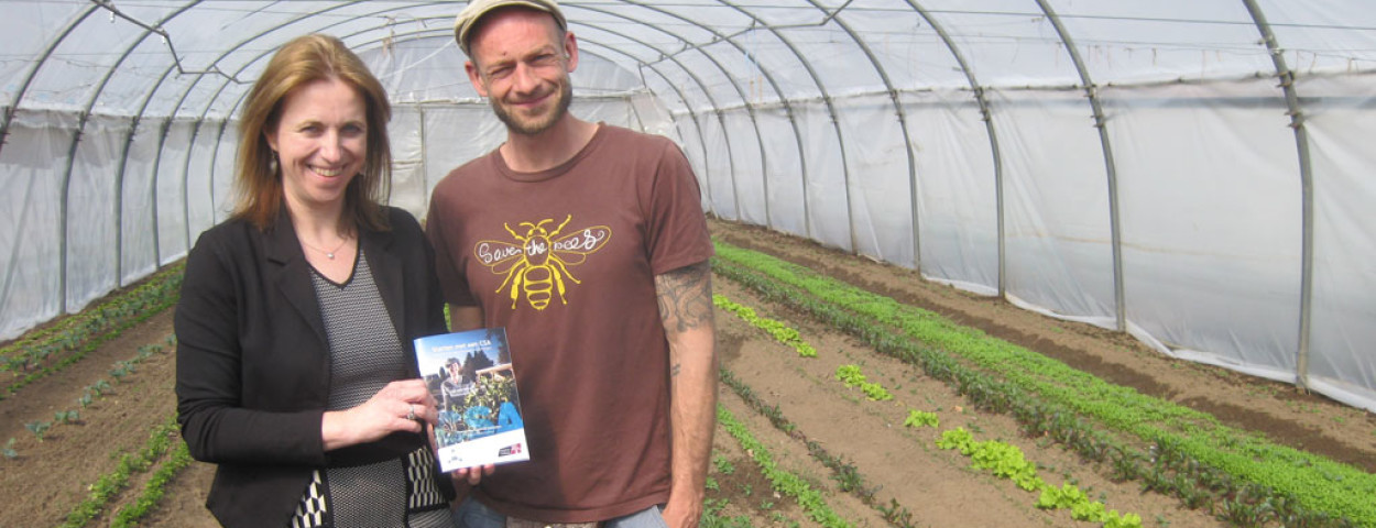 De gedeputeerde voor Landbouw en Platteland stelde de gids voor op CSA-boerderij Antaboga in Tessenderlo. David en zijn vriendin Lesley zijn in 2012 op een halve hectare gestart met het telen van tientallen groenten voor de korte keten (zelfpluk of pakket). Ondertussen hebben ze een 60-tal leden en zijn ze op zoek naar extra grond om te kunnen uitbreiden in aantal leden en door te groeien naar een volwaardig maandinkomen. “Als provincie geloven we in CSA, in elke vorm van duurzame landbouw en in de waarde van het rechtstreeks contact tussen boeren en burgers”, zegt Inge Moors. De gedeputeerde omschrijft CSA als “landbouw voor en door de gemeenschap die ons doet stilstaan bij de waarde van voedsel”. Het is een relatief jonge verbredingstak want de eerste CSA-boerderij in ons land (Het Open Veld in Leuven) dateert nog maar van 2007.