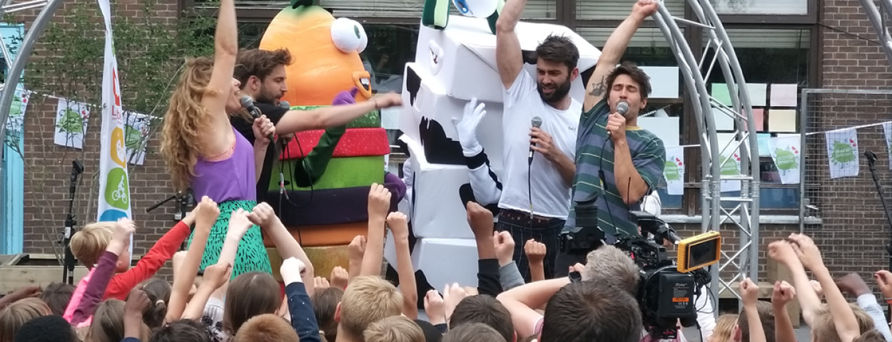 En die inspanningen werden beloond. Ex-Helden Nico, Sieg, Dempsey en Maureen én de Oog voor Lekkers-mascottes Slurp & Slice kwamen de leerlingen verrassen met een optreden tijdens een gezond festival. “Een heerlijke prijs”, reageert Sofie Rottiers, directrice lager onderwijs van basisschool Heizijde. “Als school hechten we veel belang aan gezonde voeding en doen we elk jaar veel inspanningen om onze leerlingen bewust te maken van gezonde keuzes. Met ‘Oog voor Lekkers’ kan dit op een speelse, uitdagende en interactieve manier, waardoor er een aanstekelijk enthousiasme ontstaat.”