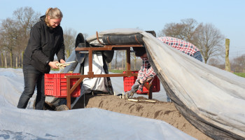 De mindere productie op dit moment kan voor de teler overigens voordelen op lange termijn met zich meebrengen. De lege rekken in de boerderijautomaat vult hij namelijk op met groene asperges. “Op deze manier leren de mensen de groente asperges ook kennen”, grapt de ondernemer die als één van de weinige telers in Vlaanderen groene asperges teelt.