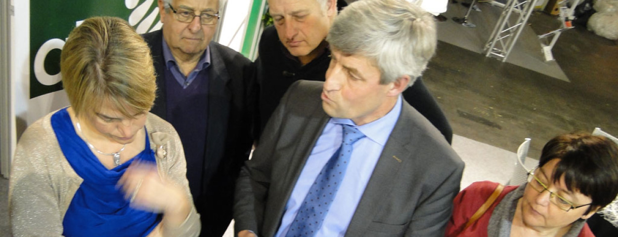 nieuwsTijdens Agriflanders bezocht Vlaams minister van Landbouw de beursstand van het Algemeen Boerensyndicaat. Freddy Van Assche, een grondwitloofteler op rust die al eerder zijn vaardigheid met pen en papier demonstreerde, zag zijn kans schoon om een nieuwjaarsbrief voor te lezen. “Het zat ons echt niet mee in 2014", aldus Van Assche. “Door hun verbetenheid en doorzettingsvermogen weten de meeste boeren het hoofd boven water te houden ondanks de dramatisch lage prijzen. Wat de sector recht in het hart heeft getroffen, is de intentie om tientallen moderne en goed geleide levenskrachtige landbouwbedrijven te laten verdwijnen voor de boven alle redelijkheid verheven doelstelling van groene instandhouding.” Hij eindigde met een smeekbede voor correcte oplossingen voor de getroffen bedrijven.