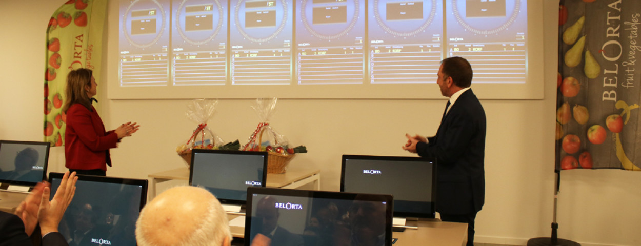 nieuwsVeiling BelOrta heeft in Borgloon een nieuwe verkoopzaal in gebruik genomen. “Deze fonkelnieuwe zaal, uitgerust met state-of-the-art software, duurzame materialen en de allernieuwste kopersuitrusting toont aan dat de klok centraal blijft staan in de verkoop van fruit”, zegt Filip Fontaine, directeur van BelOrta. De afgelopen twee jaar en de komende twee jaar zal BelOrta in totaal 15 miljoen euro geïnvesteerd hebben in de site in Borgloon. De veiling kiest daarmee duidelijk voor verankering in Limburg.
