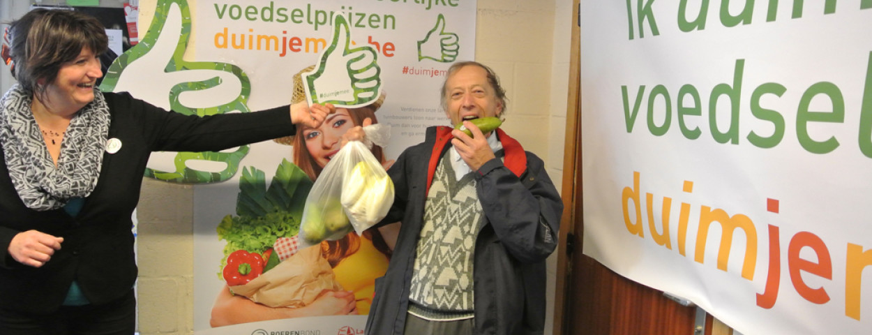 Met de afficheactie ‘duim je mee’ wil Boerenbond samen met Landelijke Gilden de consument bewustmaken van de oorsprong van zijn voedsel, en aansporen om hoge kwaliteitseisen te vertalen naar een eerlijke prijs voor de producent. Sociale media zoals Twitter en Facebook moeten helpen om de boodschap te verspreiden door selfies te delen waarop je een landbouwproduct, of je landbouwbedrijf, een duim geeft. Die kunnen ook bekeken worden via de duimjemee-website, die de spil van de actie vormt. Hier vertellen landbouwers hun verhaal en kan je berekenen hoeveel van de winkelprijs naar de producerende landbouwer gaat.