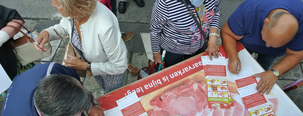 “Boeren krijgen te weinig voor het werk dat ze leveren”, klinkt het bij een sympathiserende voorbijganger. “Alle kleine beetjes helpen, en daarom teken ik de petitie. Supermarkten hebben te veel macht. Als consument zouden we terug meer bij de boer zelf onze inkopen moeten doen, dan zijn we tenminste zeker dat het geld dat we betalen bij hem terechtkomt. We zijn zelf geen landbouwers, maar zien hoe boeren in weer en wind hard labeur verrichten. Ik vind het niet meer dan normaal dat ze daar dan ook een eerlijke prijs voor krijgen.”