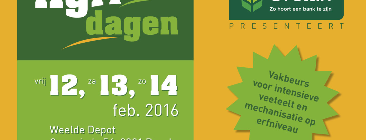 nieuwsDe affiche van de Agridagen laat er geen twijfel over bestaan. Verwacht je van 12 tot en met 14 februari aan een vakbeurs met duidelijke focus op (intensieve) veehouderij. Met een voormalig militair domein in Ravels als ‘uitvalsbasis’ is ook de doelgroep duidelijk: veehouders in de Kempen en omstreken. Zo dicht bij de Nederlandse grens weten de organisatoren – het team dat Agriflanders en Werktuigendagen op zijn cv heeft staan – zich ook verzekerd van de interesse van onze Noorderburen. Alle ingrediënten zijn aanwezig om de ‘oude Agridagen’ naar een hoger niveau te tillen, lees: meer bezoekers te verwelkomen. Bij de standhouders is de ‘schaalvergroting’ al ingezet: met 20.000 m² beursoppervlakte zijn de Agridagen groter dan ooit.