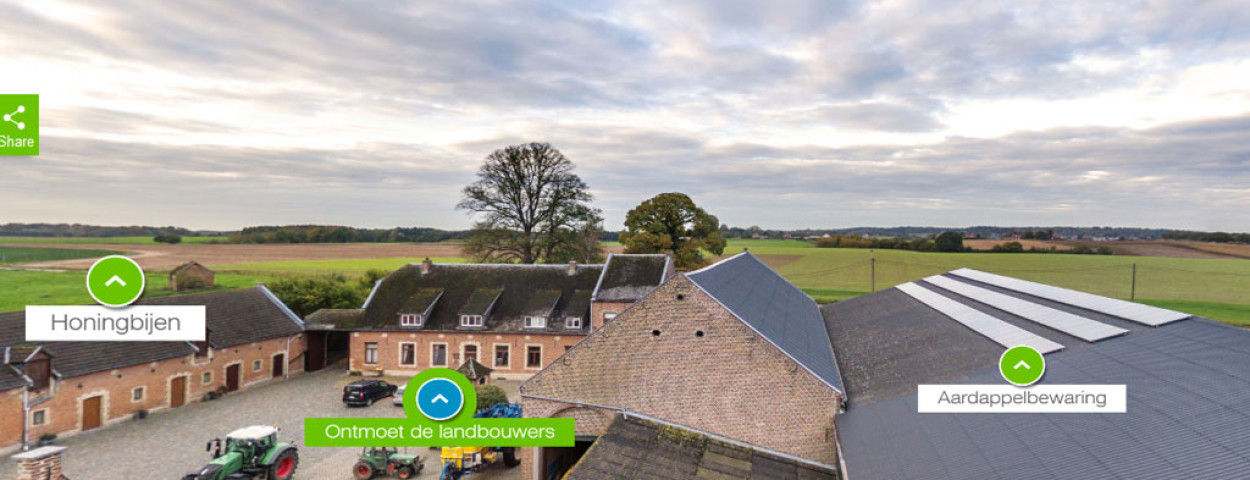 Alle werkzaamheden op het landbouwbedrijf worden tijdens de virtuele rondleiding toegelicht. Komen aan bod: de aardappelteelt en -opslag, de activiteiten in de perenboomgaard en op de mais-, koolzaad- en suikerbietvelden. De verschillende initiatieven om de landbouw te verduurzamen (erosiebeperkende maatregelen, spuittechnieken,…), krijgen een woordje uitleg. In een afzonderlijk hoofdstuk leren bezoekers welke maatregelen de biodiversiteit op en rond een landbouwbedrijf kunnen stimuleren.