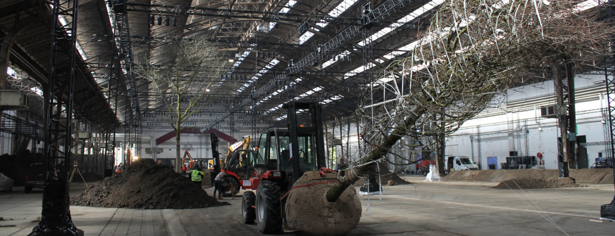 De Gentse Floraliën vinden dit jaar plaats van 22 april tot en met 1 mei, maar sectororganisatie AVBS is nu al begonnen om zijn stand in te kleden, onder leiding van architectenteam Inge De Bruycker, Denis Dujardin en Geert Pattyn. Bedoeling is de de Gentse Floraliënhal om te toveren tot één groot landschap waarin de Gentse azalea en kleurencompatibiliteit een belangrijke rol spelen. Daarom werden alvast zeven bomen van meer dan 10 meter hoog aangevoerd.